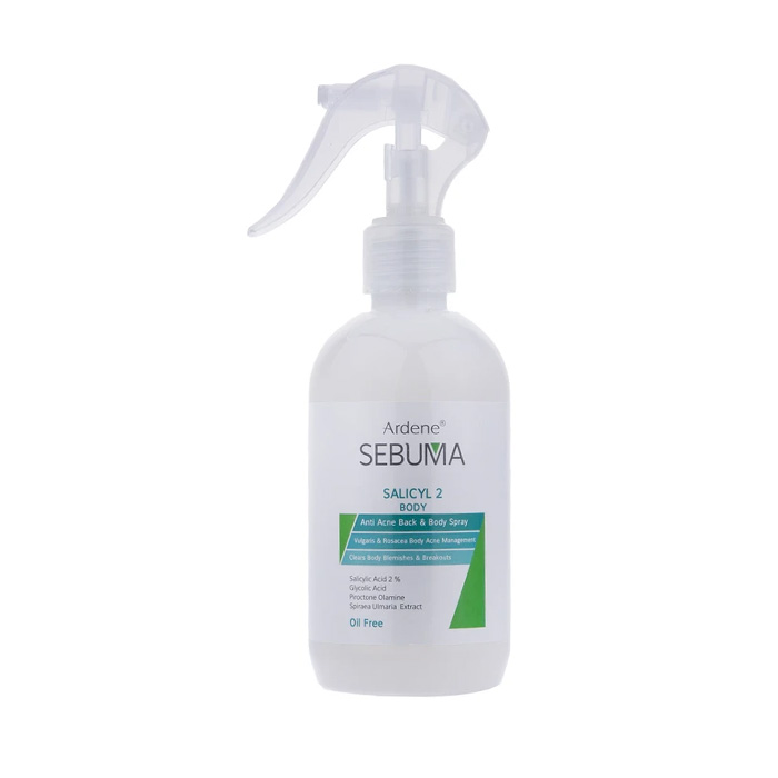 اسپری ضد جوش بدن آردن سبوما با استفاده از اسید سالیسیلیک و اسید گلیکولیک، سلول های مرده لایه شاخی را از بین برده و از تجمع آن ها و ایجاد جوش پیشگیری می کند. علاوه بر این اسپری ضدجوش بدن اردن سبوما، با نیاسین آمید و عصاره لیکوریس، اثرات باقی مانده از جوش و آکنه را نیز رفع و در نهایت با کاهش جوش های التهابی ملایم تا متوسط، کومدون های سر سیاه و سر سفید، پوستی شفاف و بدون جوش به ارمغان می آورد. این محصول غیر کومدوژنیک و فاقد چربی است و برای پوست های چرب و جوشدار قفسه سینه، بازو و پشت، شانه و گردن مناسب است.