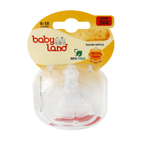 سر شیشه کودک دهانه عریض بیبی لند کد 500 مشابه سینه مادر طراحی شده و از فشار به کام کودک جلوگیری مینماید. این سر شیشه در زمان مکیدن توسط کودک اجازه میدهد تا خلا ایجاد شده به دلیل تخلیه شیر، با ورود هوا به داخل شیشه شیر جبران شود. این فرایند باعث میشود کودک بدون مکث و باز کردن دهان به مکیدن شیر ادامه دهد و از ورود هوا به معده وی ممانعت به عمل آید. یکی دیگر از مزیتهای انتخاب این سر شیشه جنس سیلیکونی آن بوده که کیفیت و ماندگاری بالایی دارد.