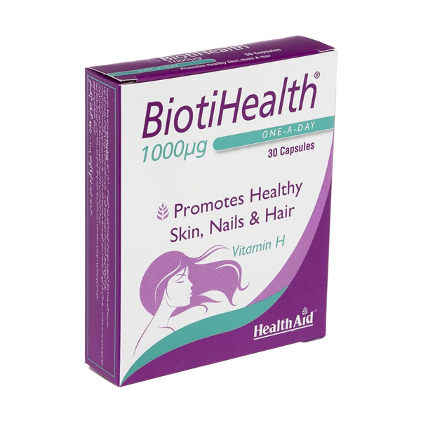 هر کپسول بیوتی هلث 1000 میکروگرم هلث اید همانگونه که از نامش مشخص است حاوی 1000 میکروگرم ویتامین B7 است. بیوتین یا ویتامین B7 یکی از ویتامینهای گروه B محسوب میشود که محلول در آب است و بدن انسان قادر به ذخیرهسازی آن نیست. اگر از ریزش و نازک بودن موهای خود ناراضی هستید، پوست صورتتان درخشندگی و شادابی لازم را ندارد و یا از شکنندگی و عدم استحکام ناخنهای خود رنج میبرید، بیوتین بهترین ویتامین مورد نیاز بدن شما است که با مصرف روزانه یک کپسول از مکمل بیوتی هلث نیاز بدن به این ویتامین ضروری را رفع خواهد کرد. Biotin در کاهش ریز مو بسیار موثر است. پس از متوقف شدن ریزش مو، نیاز به رشد موهای جدید است، بیوتین در این زمینه نیز مفید عمل میکند. بیوتین بهطور چشمگیری گردش خون پوست سر را نیز افزایش میدهد.