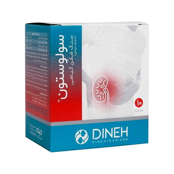 ساشه سنگ شکن گیاهی سولوستون دینه وظیفه انحلال سنگ‌های کلیوی را بر عهده دارد. این محصول حاوی 10 عدد ساشه بوده که از تشکیل کریستال‌های کلسیم اگزلات و اسید اوریکی در کلیه جلوگیری می‌کند. ساشه سولوستون حاوی عصاره انگور خرس، پودر پتاسیم سیترات و پودر منیزیم سیترات بوده و به واسطه همین ترکیبات موثر عملکرد مجاری ادراری را بهبود بخشیده و از بروز عفونت در آن پیشگیری می‌کند. ساشه سنگ شکن گیاهی سولوستون دینه، از ایجاد سنگ در کلیه جلوگیری‌ کرده و تراکم کریستال‌ها را کاهش می‌دهد. همچنین این فرآورده خاصیت ضد عفونی کننده دارد و به بالا بودن PH ادرار کمک می‌کند. بنابراین خرید قرص کلیه و استفاده روزانه به آن دسته از افرادی که دچار سنگ کلیه و عفونت‌های مجاری ادراری هستند، توصیه می‌شود.