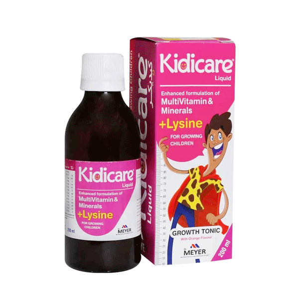 شربت Kidicare یک مولتی ویتامین برای کودکان است که علاوه بر تامین ویتامینهای ضروری، آهن و مواد مورد نیاز اطفال حاوی لیزین نیز هست. شربت کیدیکر ساخت ایران و محصولی از کارخانه داروسازی البرز دارو تحت لیسانس شرکت ویتابیوتیکس انگلستان است. شربت افزایش قد کودکان به بهبود رشد جسمی در کودکان و نوجوانان، تقویت حافظه و یادگیری کودکان در حال رشد، تقویت سیستم ایمنی بدن، افزایش اشتها و بهبود سوخت و ساز بدن کمک میکند.