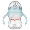 شیشه شیر دسته دار آنتی کولیک بیبی لند کد 249 با ظاهر کودکانه و رنگ جذاب میتواند مورد قبول کودکان باشد. جنس این شیشه از پلی پروپیلن است که در دسته پلاستیکهای ایمن قرار میگیرد. شیشه شیر بیبی لند از یک بطری پلاستیکی با رنگ شفاف ساخته شده که در فرایند تولید آن ماده مضر بیسفنول A یا همان BPA به کار نرفته است. روی بدن محصول، خط درجه بندی خیلی خوانا و واضح مشاهده میشود که میتوانید از این طریق میزان شیر هنگام تغذیه نوزاد را اندازهگیری نمایید. در دو طرف بدنه شیشه شیر آنتی کولیک دو دسته پلاستیکی وجود دارد که به راحت دست گرفتن بطری کمک میکند. البته شما در صورت صلاح دید میتوانید این دسته را از دهانه بطری جدا نمایید.