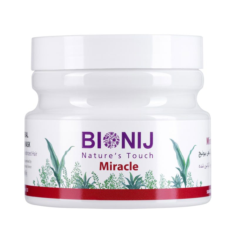 ماسک موی میراکل بیونیج محصولی کاملاً گیاهی برای استفاده داخل حمام است که نه تنها موجب ترمیم آسیب های ناشی از رنگ و دکلره می شود، بلکه عمر کراتین موهای کراتینه شده را افزایش می دهد. همچنین به دلیل وجود ترکیبات تغذیه و ترمیم کننده، مو نرم و لطیف شده و باعث باز شدن گره موها می شود. استفاده مداوم از این محصول موجب بهبود حالت پذیری موها می شود. ماسک موی گیاهی میراکل بیونیج، مخصوص موهای رنگ و یا کراتین شده؛ حاوی روغن جوانه گندم، روغن نارگیل، کراتین هیدرولیز شده، شی باتر، عصاره برگ آلوئه ورا است که موجب افزایش درخشندگی مو، تثبیت رنگ مو، ترمیم و بازسازی ساختمان کراتین موهای آسیب دیده و نرم کنندگی موثر می شود. عصاره های گیاهی به کاررفته در این ماسک مو موجب ترمیم آسیب های ناشی از رنگ و دکلره می شود، بلکه عمر کراتین موهای کراتینه شده را افزایش می دهند. همچنین به دلیل وجود ترکیبات تغذیه کننده و ترمیم کننده، مو نرم و لطیف شده و باعث باز شدن گره موها می شود. استفاده مداوم از این محصول، موجب بهبود حالت پذیری موها می شود.