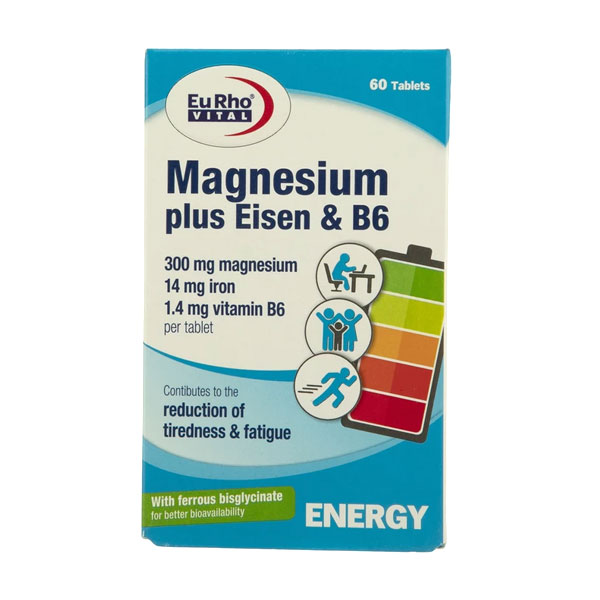 فعالیت‌های روزمره زندگی، منجر به افزایش نیاز بدن به مواد مغذی می‌شود. مدیریت کردن زندگی با توجه به کار، اوقات فراغت و خانواده نه تنها چالش برانگیز است بلکه به انرژی کافی نیز نیاز دارد. یک رژیم غذایی متعادل و سالم، مواد مغذی لازم را برای تامین این نیازها فراهم می‌کند. با این حال، ترجیحات فردی و سلیقه‌های مختلف ممکن است منجر به این واقعیت شود که ویتامین‌ها و مواد معدنی مهم دیگر در مقادیر مطلوب جذب نمی‌شود. قرص منیزیم پلاس آیزن و ویتامین B۶ یوروویتال دارای منیزیم، آهن و ویتامین B۶ بوده که ترکیبی متعادل از مواد مغذی مهم برای آزادسازی انرژی و تقویت قدرت جسمانی را ارائه می‌دهد. همچنین این مواد مغذی در سوخت و ساز طبیعی بدن و کاهش خستگی نقش دارند. علاوه بر این، آهن به شکل گیری سلول‌های قرمز خون و هموگلوبین کمک می‌کند.