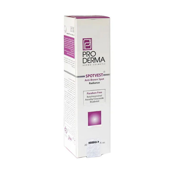 کرم روشن کننده پوست پرودرما (anti-brown spot) با داشتن ترکیباتی مانند بوتیل رزورسینول، شیرین بیان و ویتامین C سبب مهار فعالیت آنزیم تیروزیناز می گردد و به حذف تدریجی لک و روشن تر شدن پوست کمک می نماید.