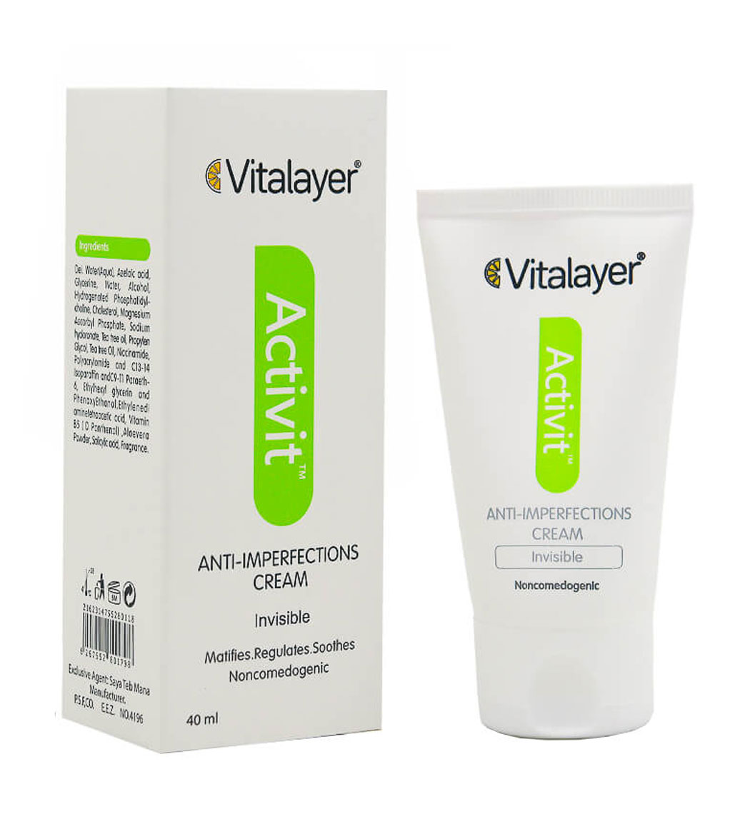 نیاسین آمید موجود در اکتی ویت ویتالیر به بهبود رنگ پوست صورت کمک کرده و روغن درخت چای آن با خواص ضد میکروبی از گسترش باکتری های مولد آکنه جلوگیری می کند. کرم ضد جوش ویتالایر در تنظیم ترشح چربی پوست اثرگذار بوده و فرم های رنگی آن از پوشانندگی قابل توجهی برخوردارند.